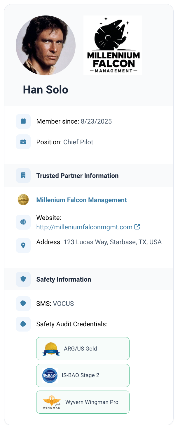This new feature puts those credentials front and center. Every trip posted by a Trusted Partner now includes the operator’s recognized safety programs, enabling pilots to understand at a glance the standards the company meets, how disciplined their operation is, and how seriously they take risk management. It transforms what used to be invisible into something verifiable and trusted.