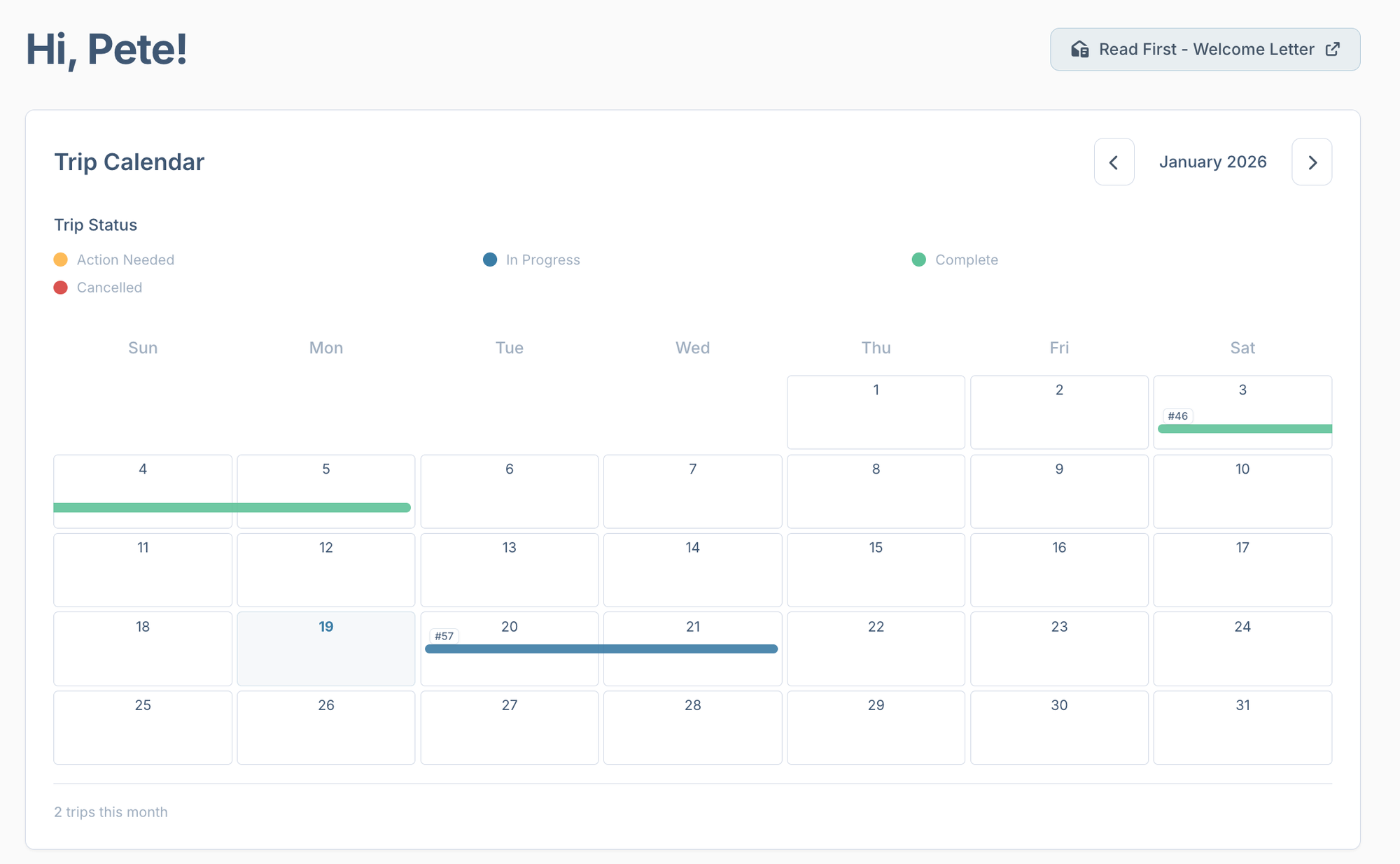It’s a small feature on paper. But in daily use, it quietly becomes the heartbeat of the operation. Open the Trips page. Glance at the calendar. Click what needs attention. Move on with the day.